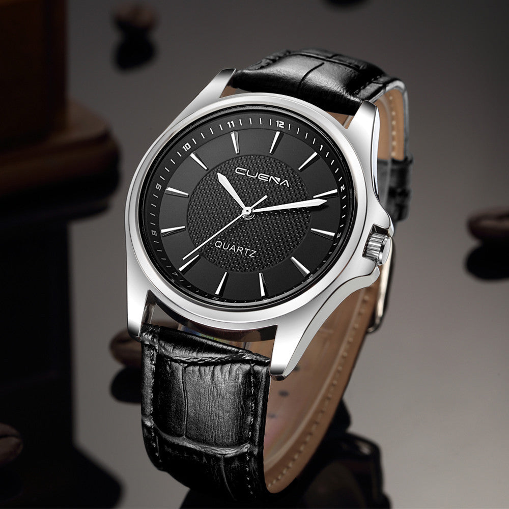 Fashion Men Casual Checkers Faux Leather Quartz Analog Wrist Watch